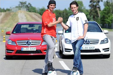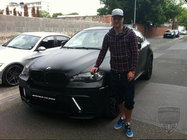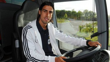 Mario Götze a nagy rivális Borussia Dortmundtól igazolt a Bayernhez. Dortmundiként SL500-as Mercedest hajtott, nem tudni, megvan-e még neki. Edition 1 volt egyébként: 435 lóerő, 35 millió forint. Mesut Özilnek Ferrari 458-asa van, amivel már szabálytalan parkolásért meg is büntették. Sami Khedira a fotón éppen a németek csapatbuszát próbálgatja.