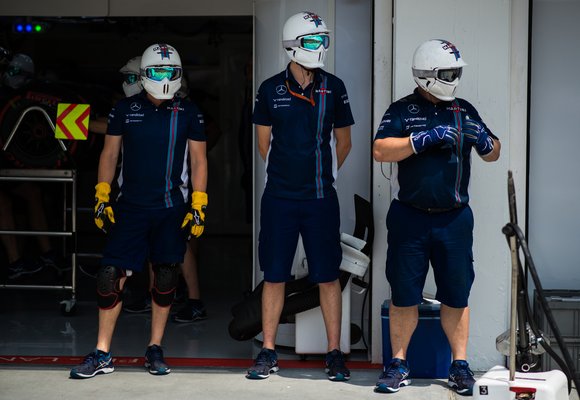 1,9 másodperc: ennyi idő alatt szervizelik le a Williams-Martini autóját a boxkiálláskor, ezzel első helyen áll a csapat a Forma 1-ben. Gyorsabbak, mint a Red Bull, vagy mint a Mercedes. Meg is nézhetjük a gyakorlást: az álló motorú autót a helyére tolja pár szerelő, a többiek nekiugranak, és ugyan nem mérem, de három másodpercnél tovább tényleg nem kattognak a légkulcsok. Sajnos maga az autó sokkal lassabb, mint a szerelők, ahogy a versenyen később kiderül. Miközben gyakorolgatnak, a cuccukat csodálom: van benne valami birodalmi rohamosztagos. Edd azt mondja, az állvédő azért van, mert dögösen néz ki, meg úgy képzelem, hogy mert ez védi meg az állkapcsukat a leeséstől, amikor el-elálmélkodnak tulajdon emberfeletti teljesítményükön.