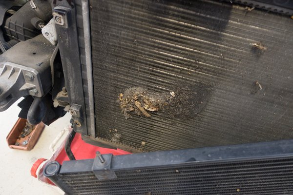 A három hűtő közül kettő, a vízhűtő és a klímahűtő egymás előtt áll, egyszerre jelent jót és rosszat a köztük lévő évtizedes mocsok. Az Audit nem működő klímával vettük, és Göbivel a nyomáspróba nélküli újratöltéstől vártuk a csodát, a hazaérkezés után. A rendszer valóban üres volt, de mi betudtuk ezt a húsz évnek és 10 ezerért nyomattunk bele gázt. Nekem még töltés utáni harmadik napon is sikerült bemagyaráznom, hogy a kánikula miatt nem fagyaszt már olyan vadul, mint az elsőn. Ez kidobott pénz volt, önök legyenek okosabbak. Ha egy klímarendszerben nincs hűtőközeg, valamit általában cserélni vagy javítani kell, nem tölteni.