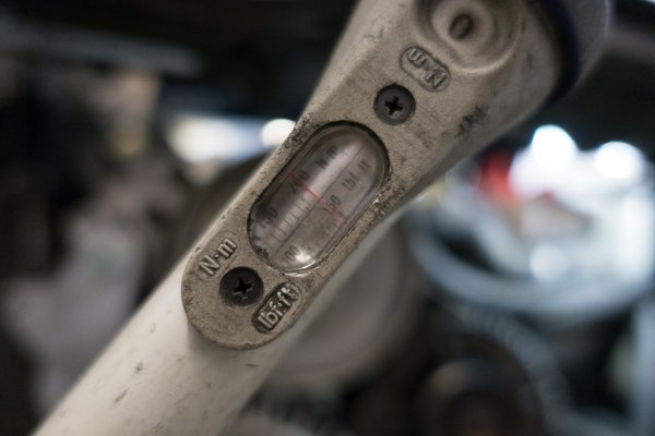 Ezután Zoli, aki láthatóan belemelegedett, elővette leghosszabb nyelű nyomatékkulcsát, beállította 200-ra, majd néhány erőteljes mozdulattal kattanásig tekerte a hatalmas központi csavart. Amikor ezzel elkészült, segédvonalakat húzott a szíjtárcsára 3-6-9 és 12 óránál, majd már nem a nyomatékértéket, hanem a csavar pontos helyzetét figyelve éppen 270 fokot fordított, tiszta erőből. Tipikus ne próbáld meg otthon, mert többé nem leszel nemzőképes - jellegű mozdulat.