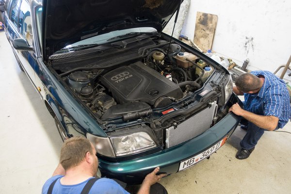 Szervizvezető Zoltán, a kiválasztott független műhely tulajdonosa eddig csupa olyan öreg autóval találkozott, amelyekben a megbontás előtt ismeretlen bombák robbantak fel, de elfogadta, hogy én viszek mindent, amire szükségünk lesz, és így spórolok néhány tízezer forintot. Amikor az Audi magyarországi utóvirágzásának fontos napján, reggel hét órakor a szerviz felé döngettem, szerkesztőségben elköltött ebédet terveztem és vártam, hogy élő cáfolata legyek több ezer év szerelői tapasztalatának.
