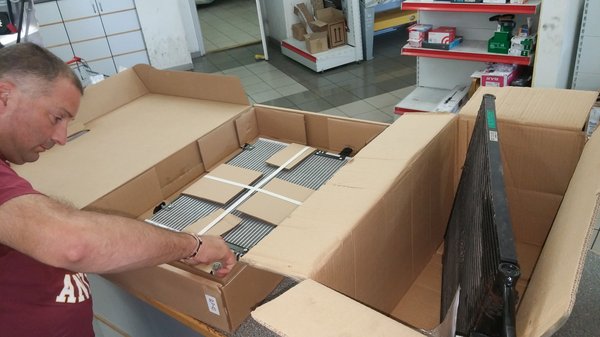 Több cég is kínál vagy kínált klímahűtőt a C4-es Audihoz. A gyári alkatrész utolsó ismert ára, az Óbudai autójavító szerint 215 ezer forint, de már nem kapható. Gondolom elkapkodták az összeset. Egy Hella 40 ezerbe került volna, ha e történelemformáló napon éppen lett volna készleten az általunk kiguglizott alkatrészes cégeknél. A legolcsóbb, de nem bennfentes kedvezménnyel kapható darab 25 ezerért várta gazdáját a Láng autóalkatrész üzletében, amelyet az Audi-műtét helyszínéhez képest a Földgolyó másik oldalára helyezhetünk. Ezt választottuk.