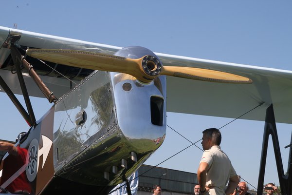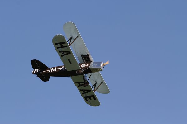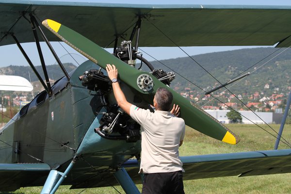 A gépet felszállás előtt motorozzák, vagyis szakszerűen bemelegítik. Számítottam némi köszörülésre, de a sornégyes Walter-Minor 4-III szinte azonnal ugrik, és jellegzetes, pattogó, agresszív alapjáraton jár, ahogy csak az olyan motorok tudnak, amiken legfeljebb ötcentis kipufogó van. Közben az egész gép remeg, pedig nem olyan reszketeg ám, csak a fakeretre feszített vászon pulzálása csalóka.