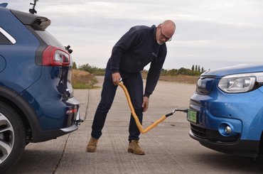 Tudod, egy villanyos Kia Soullal, kora őszi időben, klíma/fűtés nélkül hány töltéssel érsz Kunmadarasra Óbudáról? Ezt megsúgjuk: kettővel. Ennek megfejetésével telt a délelőttünk , délutánra viszont már egy nyolcszáz méteres kifutópályán kerestük a választ a nap másik kérdésére: egy ilyen lakossági villanyossal mennyit lehet visszatölteni egyszerű köteles vontatással. Jelentjük, nagyon sokat. Többet, mint vártuk, és gyorsabban, mint bármelyik ma használt gyorstöltővel. Igaz, két vontatókötél bánta, és a minket húzó Niro se tapsolta meg a mutatványt.
