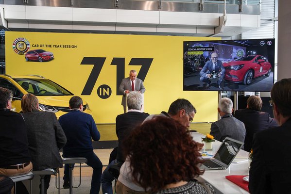 "7in17" üdvözölték a rüsselsheimi egynapos fejtágítóra érkező Év Autója-firkászokat a hatalmas Opel-sárga transzparensek, s a fura kód nem valami második világháborús navahó indián-üzenetet tartalmazott, csupán azt jelenti: 2017-re hét darab újdonsággal készül a vállalat. „Soha nem volt még annyira aktív éve az Opelnek, mint ez a következő lesz” - magyarázta KTN - „mire eljutunk 2017 karácsonyáig, a márkakereskedéseink nagyon máshogy fognak kinézni, mint ma.”