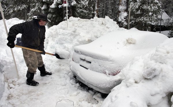 Az AP ügynökség osztotta meg ezt a képet a kaliforniai hóhelyzetről. A hétfői fotó annyiban csalóka, hogy bár valóban a mediterrán éghajlatú államban készült, de a hegyvidéki Kingvale-ben. Valószínű a tengerszinttől 1800 méterre fekvő település 143 lakójának egyike látható rajta, na meg rengeteg hó.