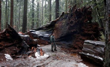 - Vége, kidőlt az autókat elnyelő kaliforniai mamutfenyő. Calaveras Big Trees Állami Park óriási fájába még az 1880-as években vágtak alagutat. Ezen az alagúton sokáig autóval is át lehetett hajtani, ez a szürreális produkció pedig nem csak a fát tette világhírűvé, de parknak is rengeteg látogatót szerzett. Azonban a kétezer éves mamutfenyő megszenvedte a csonkítást, egy ideje már látszott, hogy nehezen táplálja felsőbb ágait. Valószínű az ebből fakadó gyengeség az oka, hogy egy hétvégi viharral már nem bírt, és kidőlt.