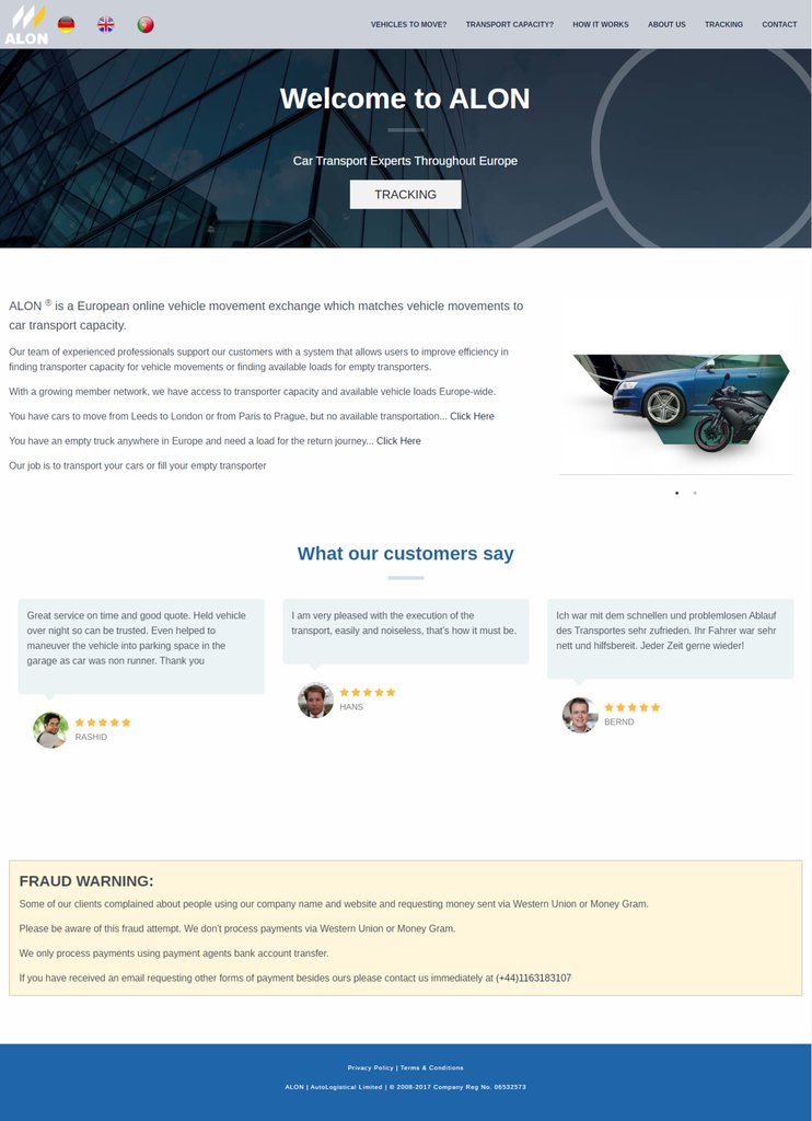 Alon nevű szállítócég amúgy létezik, még Twitter-fiókja is van, de nem azonos a szóban forgó vállalkozással. Ráadásul a kamu-Alon honlapjához nagyon hasonló címen, az auto-logisctics.com-on működik egy harmadik cég is, de annak nem Alon a neve.
