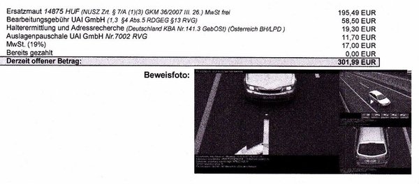 A háttérben a Nemzeti Útdíjfizetési Szolgáltató Zrt. (NÚSZ) által megbízott behajtócég áll, amely 2013-óta a német és osztrák autósoktól szedi be az itteni úthasználati pótdíjakat. Biztos bevétel ez, hiszen az UAI Gmbh automatikusan megkapja a NÚSZ-tól a külföldi autók fotóit, majd az ezen látható rendszám alapján lekérdezi az üzembentartó adatait a kinti nyilvántartásokból, és küldi a felszólítólevelet.
