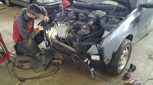 Most mi lesz? - szegezem a kérdést Csabának. Reménykedem egy biztató válaszban, amiben nem szerepel sem a bontó, sem pedig a gyufa szó, és nem is kell csalódnom. Megjavítjuk, van lemez meg kalapács – mondja olyan természetességgel, ahogy más levegőt vesz. Nagyra értékelem ezt a fajta optimizmust. A feltárás után feszített tempóban a javításokba is belevetette magát, de be kellett látnom, a Műegyetem szakmai napjára nem áll össze a kaszni. A sors fintora, hogy a korábban fulladó, leállogató, rángató GTI nem műszaki hiba miatt kényszerült először trélerre: megígértük a szakkolisoknak, naná, hogy elmegyünk.