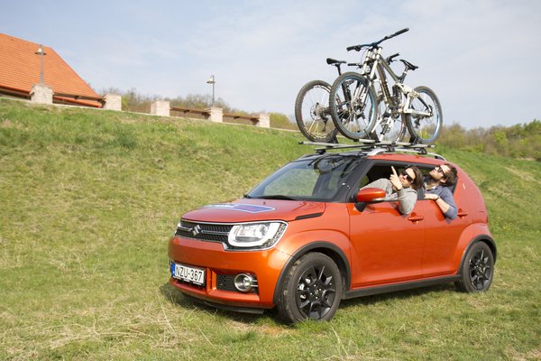 És mivel alkalmanként feltűnik a szerkesztőségben egy-egy komolyabb bringa, tudom, hogy a technika iránt érdeklődő embereknek egy modern bicikli legalább olyan érdekes, mint egy autó. Ezért is kérdezte meg Papp Tibi pár hete, hogy nincs-e kedvem feldobni két biciklit az új Ignisre, hogy tekerjünk egyet valahol. Tetszik a kisautó, elég mokányul néz ki, viszont tudva, hogy mekkora, nem gondolom, hogy a ideális jármű a célra. De ha bringázhatok, alapvetően mindegy, mindent megoldunk (mindent IS), a rekord három ember, három bringa és mindezek ellenére három csukott ajtó egy háromajtós hármas Golfban.