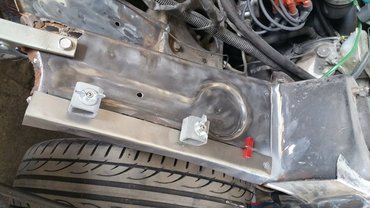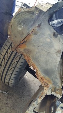 Amikor Csabáék elkezdték bontani a kasznit, ezek a tervek szertefoszlottak. Ahogy azt már a sárvédő levétele után láttuk, a tartólemez egészen a toronyig szétrohadt. Nem szívderítő látvány, de aztán kaptam az újabb képeket, ahol már látszik, elkezdték újjáépíteni az elrongyolódott részt. Ekkor jött a következő felismerés: az autónk jobb eleje nagyjából két centivel rövidebb mint a bal. Úgy sejtem, a gyártósorról nem így gördült le, a két fotót összevetve a motorháztető és a sárvédő sarkánál kiválóan látszik a deficit.