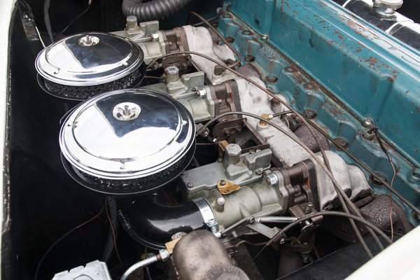 Naja, az a motor tényleg nem volt a legjobb választás. Ha még valami combosabb, modernebb konstrukció lett volna, de nem: a nyomórudas vezérlés és a csak minden második hajtókar után következő csapágyazás eleve nem tette lehetővé, hogy rendesen megemeljék a motor fordulatát – ami nettó teljesítmény-hátrányt jelentett bármihez képest. De itt igazi puhaautó-stílusban még a hengerfejben ikresítve is voltak a csatornák, megakadályozva ezzel a könnyű és gyors gázcsere lehetőségét: a hat hengernek összesen négy kipufogó- és három szívócsatorna jutott. A gázcsere-probléma olyan súlyos lett a három különálló karburátor és az enyhén megnövelt fordulatszám miatt, hogy az első és az utolsó henger mindig szegényebb keverékkel járt a kelleténél. Csak összehasonlításképpen, a két, hasonló méretű motorral szerelt európai konkurenst ismét elővéve: a Jaguar XK120-nak minden szelephez külön csatornája volt, a vezérlése két, felül fekvő bütyköstengellyel zajlott (gyengébbeknek: DOHC), a Mercedes 300 SL nagy Adenauer-limuzinból származó motorja pedig ugyan csak egy felül fekvő vezérműtengelyt hordott (az is sokkal modernebb megoldás), de a keverékképzését mechanikus benzinbefecskendező végezte.