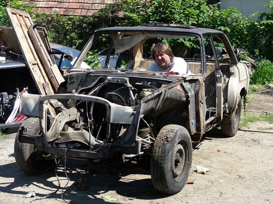 Már hat éve jártam Kareszhoz Viszre a Mercimmel. Azt az autót néha lakatoltuk is, szép általában lett, tartós nem annyira, mert mindenféle rozsdaátalakító szerekkel kísérleteztem, amelyek csendben tripla sebességgel falták a karosszériát (ó, a szép emlékű, szilvalekvárszagú Fertan), ráadásul Karesz csak a nitrós zsírtalanításban hitt a fényezés előtt, pedig arról most már tudom, hogy abból jó nem sül ki. Amikor nála jártam és dolgoztunk, a szerelés szüneteiben panaszkodtam neki, de csak mint barátnak, hiszen el se tudtam képzelni, hogy egy átfogó, teljes homlokfal-, padló-, belsőküszöb-, valamint részleges külsőküszöb-, motortérilemez-cserét magában foglaló, giga-lakatolásba valaha belefogna.
