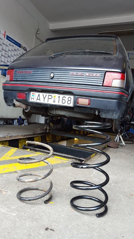 Ebben az egész 205-ösözésben eddig egyetlen dolog van, amire egyetlen rossz szót sem tudok mondani, az pedig a klubélet. A vonatkozó fészbukcsoportban bármikor tettem fel kérdést, legkésőbb fél órán belül érkezett válasz, ami az esetek döntő többségében közelebb vezetett a megoldáshoz. Náluk ott a tapasztalat, aminek mi híján vagyunk, világos, ha a botladozásaim láttán a fejüket fogják, vagy megmosolyognak, én még csak most tanulok valamit, ami nekik már sok éve a zsigereikben van. Így hát ott próbáltam meg gyári, vágatlan, bontott GTI-rugót is szerezni. Délután fél ötkor kérdeztem meg, van-e valakinek, hatkor pedig már a kezemben volt egy hibátlan pár, Viktor jóvoltából.
