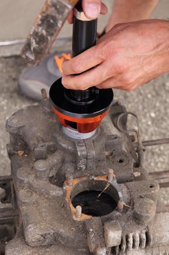 A csapágy csapágyfészekbe való beütése érzékeny művelet. Akár siklócsapágyról, akár sima csúszóperselyről, vagy hagyományos csapágyról van szó, a pontos beillesztés és bevezetés döntő fontosságú. Siklócsapágy esetében a csapágyfém hiába két- vagy háromrétegű, nagyon vékony és gyenge. Háztáji módszerekkel azt kockáztatjuk, hogy a csapágy alkotója (felülete) nem lesz párhuzamos és egyvonalú a csappal, így élettartama rövid. Hagyományos, acélházas mélyhornyú golyós- vagy görgőscsapágy esetén pedig a ház az, ami sérülhet, ha ferdén vezetjük be a csapágyat. A ferdén beütött csapágy deformálja a házat, és a következő cserénél már nem lesz megfelelően szoros, nem lesz párhuzamos a helyzete a csappal, nehézkes az összeszerelése, az élettartam is rövidebb.