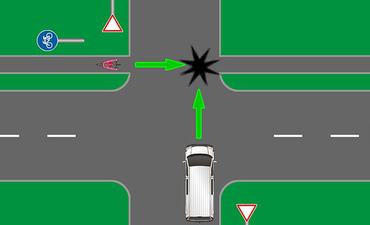 (2) A másik jármű érkezési irányától függetlenül elsőbbséget kell adni az útkereszteződésben az olyan útról érkező járművel, amelyen az útkereszteződés előtt „Elsőbbségadás kötelező” vagy „Állj! Elsőbbségadás kötelező” jelzőtábla van.