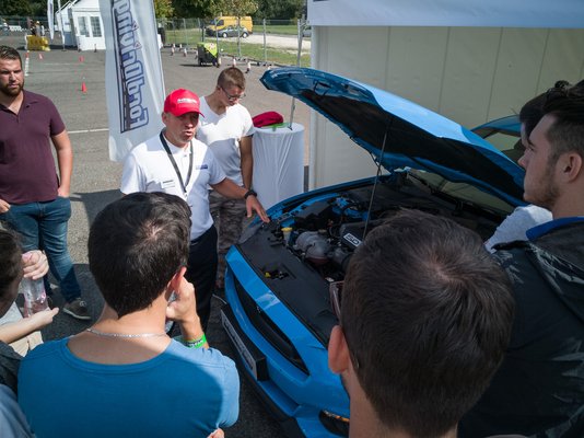 Az utolsó állomáson végre kiderült, miért hozták a Mustangot. Azon mutatták be, mit és hogyan érdemes ellenőrizni az autón egy hosszabb utazás előtt. A KRESZ-ben is ismertetett olajszint, keréknyomás-ellenőrzés és egyebek mellett volt azért V8 röfögtetés is. Jutott idő egy kis tech-demóra is, hiszen ki lehetett próbálni egy automatikus vészfékező rendszerrel ellátott Fiestát. Ebben a modellben a rendszer 45 km/h-s sebességig fékez magától, ha előttünk például megállna a sor. A márka-image növelésen kívül azért ez a feladat is hasznos volt, hiszen egyrészt kiderült, hogy ezek a rendszerek is felülbírálhatók (padlógáz esetén nem fékez be magától), másrészt felhívta a figyelmet arra is, hogy sokan nem is tudják, pontosan mire képes az autójuk. Ez manapság abból a szempontból fontos, hogy a jelenleg elérhető korlátozottan önvezető rendszerek más és más technológiákkal igyekeznek elkerülni a baleseteket, és jellemzően különböző sebességtartományokig ígérik, hogy megmentik a figyelmetlen vezető irháját.