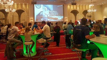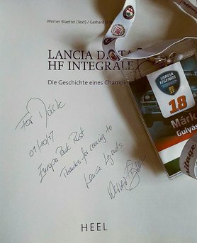 Az esti vacsora közben egy videóüzenetben a kétszeres rallivilágbajnok, Miki Biasion elnézést kért, hogy nem lehet most itt velünk - a legutóbbi Lancia Legendsen bizonyára ínhüvelygyulladást kapott a sok autogram-írástól. Azért kellemes időtöltést kívánt, ő éppen a verseny-Fulviája homologizációját intézi Olaszországban. Valóban minden második Lancián ott volt Biasion eredeti aláírása, őrület.