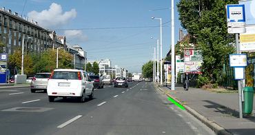 A Hungária körút képen látható szakaszán a megállást táblával nem korlátozták. A zölddel megjelölt helyen kívánsz az autóddal megállni. A két állítás közül melyik a helyes?