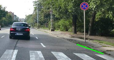 17. Megállhat-e egy jármű a képen zöld vonallal megjelölt helyen?