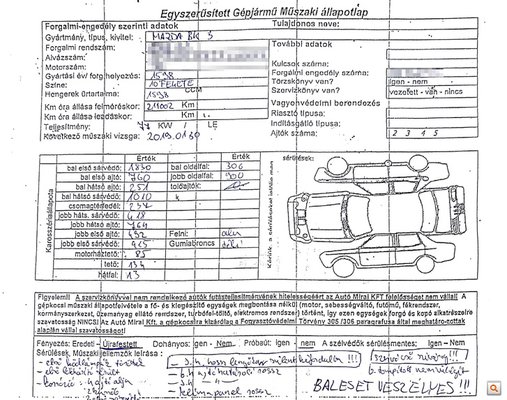 Ez eddig éppen olyan, mint egy nagyon korrekt állapotértékelő lap, csakhogy amikor pontról-pontra tanulmányozzuk az apró betűvel szedett jegyzéket, kiderül, hogy az első oldalon lévő részletes állapotértékelő táblázatban szereplő Igen válaszok valójában az autón az eladó által megjelölt részletes hibákra (például korrózió, csökkent fékhatás vagy emelt zajszint) utalnak, a másodikon viszont arra, hogy minden rendben van, esetleg megvan.
