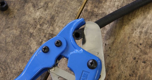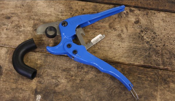 Több helyen PVC vagy KPE csővágó fogónak hívják, de a sima gumicső is szépen darabolható vele. Az álló pofa ugyanis úgy van kiképezve, hogy a cső nagyon szépen belefekszik és a kés így a megtámasztott csövet metszi el. Nem probléma, ha benyomódik a gumicső, a vágás úgyis szép lesz és könnyű is megcsinálni, nem kell Popeye alkarral rendelkeznünk. Ennek is megvan a magyarázata, ugyanis a fogó egy olyan belső áttétellel vág, mintha valami racsni segítené az erőt sokszorozni. Tényleg gyerek munka egy erősített gumicső vagy egy KPE cső elvágása.