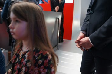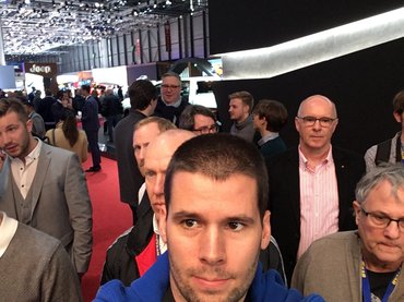 Egyre csak teltek a percek, egyre több kolléga állt mögöttem, ami nem is zavart volna, de percről-percre ki-be járogattak az emberek a standról, hol egy levitézlett olasz playboy, hol pedig négy-öt távol-keleti pénzember vonult be. Az én türelmem tartott tovább, a hátam mögött álló német kolléga kérdezte meg először, hogy mikor mehetünk már. Ez úgy 20 perccel azután volt, hogy beálltam az öltönyös elé, egyre csak zúgolódott a tömeg. Jobb híján csináltam egy szelfit az akadályoztatott sajtómunkások közösségéről: