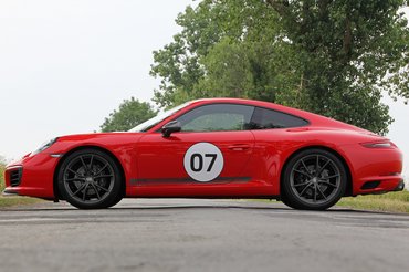 A 911 Carrera T (ez egy minimalista verziója a 911-nek, vékonyabb üvegekkel meg pár részlet átfaragásával 20 kilóval könnyebb, mint az alap Carrera) futóműve, mindene tényleg annyira fölényes, hogy az azért okozott nem kis megdöbbenést. Egy rossz minőségű bekötőútra kanyarodtunk fotózni – az aszfalt toldozott-foldozott, a szürke ötven árnyalata, hepék mellé hupákat telepítettek nagy mennyiségben. Rá kellett próbálni, itt mit tud, mert előtte is lehetett érezni, hogy nagyon stabil, de úgy, hogy közben nem ráz, nem idegesítően kemény.