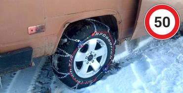 Szintén 50 km/óra megengedett legnagyobb sebességgel közlekedhetünk, ha járművünkre hóláncot szerelünk fel, és természetesen ezt az útviszonyok indokolják is. Többen kérdezték, hogy ha olyan nagy a hó, akkor autópályán is csak ennyivel mehetünk felszerelt hólánccal?
