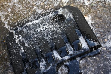 Kitakarítottam a motorteret egy langyos januári napon, hogy ne ússzon a mocsokban. Jó is hogy megtettem, mert két hét múlva, mikor beálltak a mínuszok, lekönyökölt az akku. Kapott újat – azt nem mondom, hogy nem szentségeltem közben, ugyanis a kocsibeállónkban a kocsi orra fölé belóg egy tetőtartó keresztgerenda, amitől csak kb. harmadáig nyitható a géptető, odébb tolni a kocsit nem lehetett (mert hát DSG), és ha nincs szufla, akkor reteszel P-ben. Visszaragasztottam a hűtőfolyadék-utántöltés után a hűtőmaszkot elhagyó fém fogat, és felraktam egy nem törött rendszámtáblatartót.