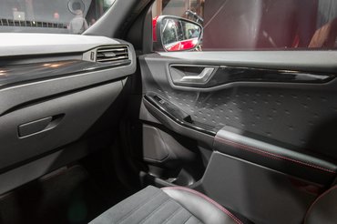 A Kugából kettőt rögtön ki is állítottak nekünk, be lehetett ülni, nyitogatni, döntögetni, láblengetni mögöttük. Testközelből kissé olyan ez a harmadik széria, mint egy túlfújt Focus, le se tagadhatná a genetikai rokonságot, de ettől még csinos darab. Tényleg irtó tágas, épp elég magas ahhoz, hogy könnyű legyen becsusszanni, a full digitális kijelzőtől sokkal modernebbnek látszik a belseje, mint az új Focusé, pedig annak szintén ott van még a tojáshéj a hátsó ütközőjén. Az anyagminőséget nehezen tudtam megítélni – mert ugye, a Focusnál pont az ajtókárpitok, a kissé buta műszerek sokat rontanak az amúgy tisztességes cuccokból összepakolt utastér megítélésén.