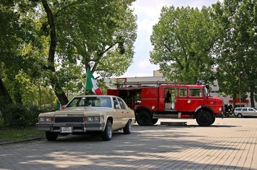 Az öreg amerikai cirkálók megtalálták egymást, és nagyjából egy helyre álltak. Egyiket sem lehet azzal megvádolni, hogy kicsi lenne, viszont egy sötétzöld Chrysler Imperial így is túlnőtte a többieket. Pont akkor értem oda, amikor a tulaj beindította kicsit. Kellemesen halkan bugyogott a 7,2 literes, karburátoros V8-as. Ez nem az a fajta motor, ami szétveti a világot minden gázfröccsre. Ez inkább a nyugdíjas bokszoló, aki békésen elvan, de ha felidegesítik, akkor még azért rendet tud tenni. Óvatos gázfröccsre így is minden kíváncsiskodó megremegett, és szinkronban meredtek égnek a szőrszálak.