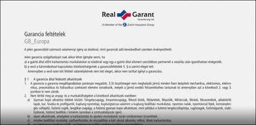 A Real Garant mindössze kétoldalas szerződést köt az ügyfeleivel, vagyis a kereskedéssel és az utóbbinak csak egy munkalapot és egy számlamásolatot kell küldenie az autót javító szakszervizből, hogy megtérítsék a kárt. Bizonyos esetekben kérnek fotókat is a hibás alkatréstől, ha látható hibáról van szó, de nagyon ritkán küldik a szervizbe saját szakértőiket a javítási folyamat ellenőrzésére. A kártérítési ügyek zömét egy órán belül elbírálják és fizetnek, ha jogosnak tartják.