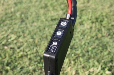 A dizájnja eltéveszthetetlenül fűnyírós, inkább a részletekben érdemes elveszni. A balkéznél lévő kis sor kapcsolónál tudjuk lehalkítani és bekapcsolni a gépet, illetve ellenőrizni az akkumulátorok töltöttségi szintjét. Elindítani ugyanúgy lehet, mint a legtöbb ilyen gépet: gomb megnyom, kallantyú behúz. A kábeleket és a bowdent szépen vezették el. Egy sima kis műanyag fül és pontos méretezés a titka, máris kifinomultabbnak hat. A tetején egy sötétített - szerintem UV szűrős – kis plexi bódé védi az akksikat a kosztól, illetve itt rejtőzik egy kis piros biztosíték, ami igazából a gyerekzár. Ez egy tök jó biztonsági eszköz, amit érdemes a fűnyíróban tartani amikor nincs benne akkumulátor, mert magamat ismerve ez lenne az első, amit elhagynék.