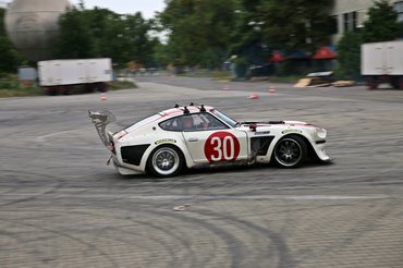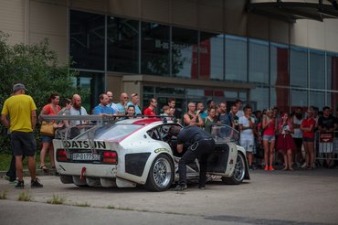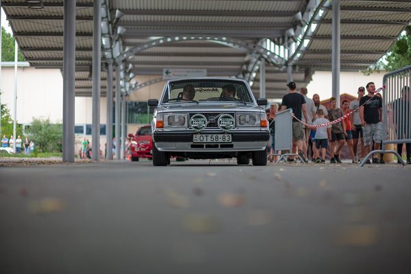 Nagyjából három lépésre állt tőle a másik kedvencem, a 244-es, ralioptikás Volvo. Hiszem, hogy ha más autómárka is kerül a top háromba, legbelül egy kicsit mindenki Volvo-buzi. Legalábbis én az vagyok, és amikor szembesültem azzal, hogy ez a konkrét 244-es keresztben repül be az utolsó kanyarba, még jobban kezdett érdekelni. A Hella lámpák, és a gyönyörű Volvo alufelnik már csak olajként szolgáltak a tűzre.
