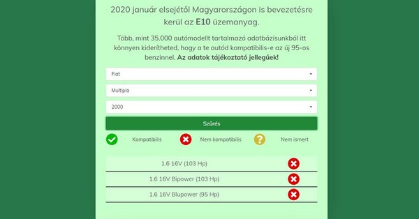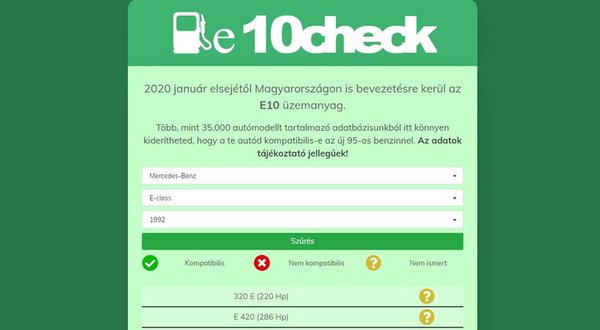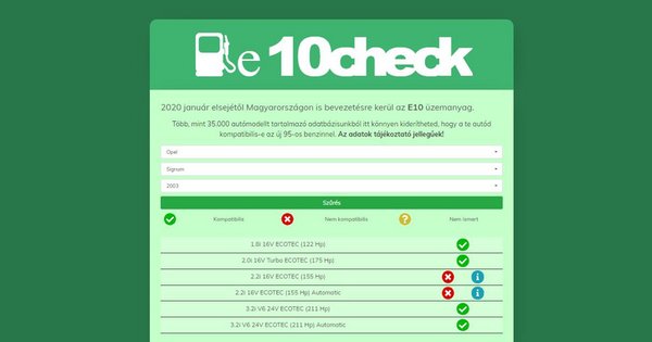 Három magyar programozó nekiült és az ünnepek alatt elkészítette az ingyenes keresőt, amellyel egyszerűen kiderítheted, hogy az autódba szabad-e az idei évtől minden kúton alapbenzinként forgalmazott, magasabb biokomponens-tartalmú E10-es jelzésű benzint tankolni, vagy sem.