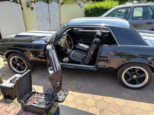 Nem sokkal azelőtt, hogy elmentem volna Németországba, édesapámmal nagyon nézegettünk egy ígéretes, Pesten árult autót, de persze akkor, a sok költség mellett tudtam, hogy csak álmodozunk róla. Aztán, amíg én kint az intenzíven feküdtem, ők ketten elmentek érte a nagybátyámmal és megvették. Kaliforniából származott az autó, de közel sem volt tökéletes, mert az olyan már akkor is a megfizethetetlen kategóriába esett, ráadásul ez lépcsős hátú kupé, azaz hardtop, nem a ferdehátú fastback, ami az igazi érték. De nem a legkisebb V8-as van benne, hanem a 302 köbinches (magyarul ötliteres), tehát számomra annyira közel áll a tökéleteshez, amiről álmodozni sem mertem.