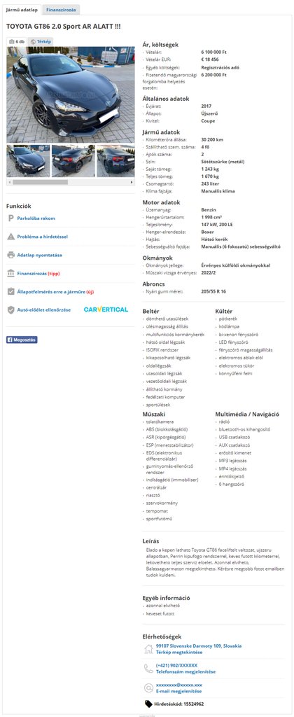 Tegyük fel, hogy ott állok Balassagyarmaton, mondjuk holnap este, 6,1 millió forinttal a kezemben, a hátam mögött Józsival, a tréleressel. Lassan begurul a litván rendszámú autó a parkolóba, ahová megbeszéltem a találkozót a nepperrel. Elborít a vásárlási agybaj, leszámolom a pénzt a hároméves Toyota GT86-ért, és már viszem is haza. Ha mindez lezajlott volna, én sem szeretnék olyan üzeneteket kapni, amelyben bemutatják az autó múltját.