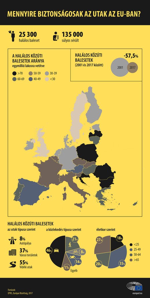 Mielőtt megvádolnátok azzal, hogy a közlekedésbiztonság ellen vagyok, gyorsan leteszek pár adatot, csak úgy elgondolkodtatásképp. Az egész világot nézve ugyan az Európai Unióban halnak meg talán a legkevesebben közlekedési balesetben, ez azonban még így is évi 25100 embert jelent a 2018-as adatok szerint. 46%-uk autóban veszíti életét, de nagyjából hasonló arányt tesznek ki a gyengébb közlekedők (21% gyalogos, 26% kétkerekű jármű) – vagyis akiknek a túlélési esélyeiken a legtöbbet javíthatna egy jól működő automatikus vészfékező rendszer. Közel két évtized alatt (2001-2017) több mint a felére csökkent az EU-ban a halálos közlekedési balesetek száma, 2012 óta azonban nagyjából stagnálnak az adatok.