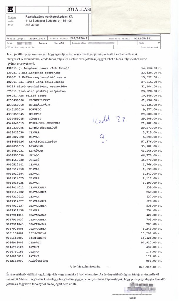 Én keveset használom saját Lexus LS400-amat, inkább motorozom. Amikor 13 évvel ezelőtt megvettem harmadik tulajdonosként, kb. 90.000 kilométer volt benne, most 250 ezernél jár. A vásárlás előtt az előző tulajdonosnő férje mutatta be az LS-t. Nekem és a kísérőmnek sem tűnt fel, hogy a nyitott motorháztetőt támasztja kézzel miközben beszélgetünk. Mint később kiderült, ez az egyik kitámasztó gázteleszkóp hibája miatt volt, amit a szerviz aranyárban kínált. Egy szaküzletben vettem végül és magam beszereltem egy hasonló, néhány centiméterrel rövidebb teleszkópot, így pár ezer forintból megoldottam a problémát. Az egérmozi a bemutatón is kontakthibás volt, azt egy ügyes rádiószerelő átforrasztotta, meggyógyult, de a hiba előtte segített az alkuban. Az eladótól örököltem egy "olcsó" fuserátort is, akihez elmentem az első kerékcsapágy morgása miatt. Az udvarában javította volna, meghatározhatatlan határidővel. Ekkor döntöttem úgy, hogy inkább márkaszervizbe fogom hordani az autót. Szerencsére nem légrugós, mert az már rég tropa lenne.