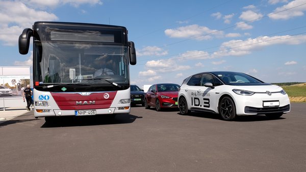 Az In-Mobility nevű rendezvényre pedig a Porsche Hungária elhozta a teljes jövőbe mutató tesztflottáját, e-Golfostul, hibrid Seatostul, Audi e-tronostul mind. A koronaékszer pedig a Volkswagen ID3 volt, a Golfnál nagyobb, Passatnál kisebb villanyautó, amelyet Zwickauban, a Trabantok régi gyárában készítenek, ráadásul karbonsemlegesen. Ez elég komoly esélyes a 2021-es címre, valljuk be.