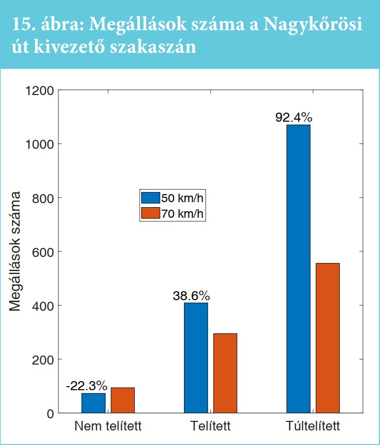 A piros lámpáknál való állandó megállás és az alapjárat miatt a pazarlás is jelentős, ezekből a megállásokból pedig az 50 km/h-ról 30-ra csökkentett sebesség esetén több adódik. Több megállás után felgyorsítani is többször kell (tételmondat!), ami nagyobb fogyasztást eredményez, mintha valamivel gyorsabban, de egyenletesebben haladna a jármű - a taxisok sem véletlenül tesznek kerülőutakat a zöldhullámok felé. Érdekesség, hogy a görbék optimuma (károsanyag, motortípus stb. függvényében) 40-70 km/h között van, efölött a légellenállás legyőzése miatt ismét nő a fogyasztás, tehát a magasabb sebességkorlátok csökkentése valóban fogyasztáscsökkentő hatással bír.