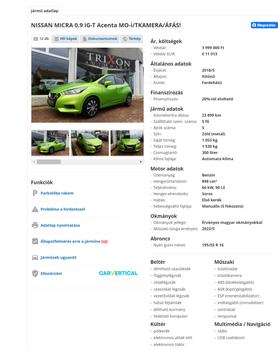 Olvasónk, Gabriella 2020. augusztusában döntött úgy, hogy régi autóját újabbra cseréli és vásárol, pontosabban lízingszerződést köt egy fiatal, keveset futott Nissan Micrára. A megfelelő autót egy edelényi kereskedésben, a Trixon-B Autóházban találta meg, ahol 3,8 millió forintért hirdettek egy 2018-as, mindössze 10 ezer kilométert futott Nissan Micrát, viszonylag sok extrát jelentő Tekna felszereltséggel. Bár Gabriellának jelezték, hogy az autónak korábban enyhe sérülése volt egy koccanásban, az elmondottak és az állapotlap alapján úgy ítélte meg, hogy nem jelentős a dolog, az autót is sikerült szépen helyreállítani, így megkötötte a szerződést a kereskedéssel és a lízingcéggel.