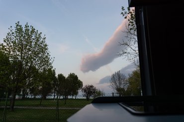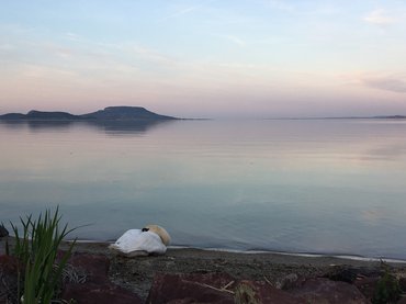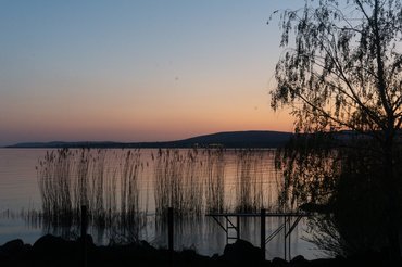 A hétvégi túra utolsó napjának estéje a káptalanfüredi kis strandnál lévő parkolójában ért, ahonnan másnap hétfő révén igen korán indultunk vissza Pestre dolgozni. Ez a parkoló most csendes volt, mivel a vasutat épp villamosítják (és persze nincs strandszezon), de ha újraindul a közlekedés, akkor számítsunk a néha elhaladó vonatok zajára. A koránkelés pozitív hozadéka a csodás balatoni napfelkelte volt.