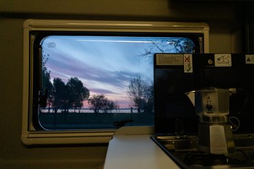 A hajnal olyan 3-5 fokos volt, így éjjel kicsit ráindítottam a fűtést, de nem azért mintha a lowcost hálózsák+pokróc kombóban fáztam volna, csak aggódtam, hogy a bojler melletti fagyszelep fázni fog ott a talajszinten, és magunk alá eresztjük a tisztavizes tartályt hajnalban.
