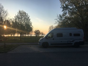 Munka után indultunk a hétvégi túrára, így az első célpont a már korábbról ismert tihanyi kerülőút egyik parkolója lett volna. Mivel elég nagy volt arra a nyüzsi (mint később kiderült, több lakóautós csoporttárs is arrafele táborozott), így az addig még nem próbált sajkodi strand előtti parkolóban vertünk tábort. Igen jó választásnak bizonyult, kellemes kis erdei hangulat, éjjeli rókaszöszmtölés, reggel madárcsicsergéssel és persze a vízpart loccsanásai.
