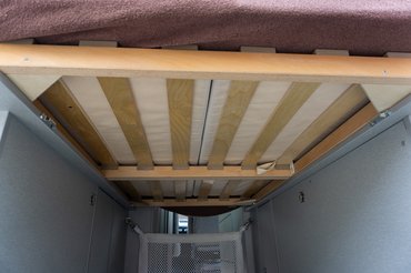 A Freeben az alsó ágy faléces rugózással lett megoldva, itt látszott leginkább a Grand Canyon-hoz képest a különbség. Ami legfeltűnőbb, az az ágyaknál lévő oldalablak. Ettől az emberben mindig van egy kis félsz, hogy éjjel kirúgja, vagy méginkább a sötétítő rolóban okoz kárt. Szerencsére a 178 centimmel elfértem, és nem történt semmilyen baleset, de magamnak tuti zártat vennék.