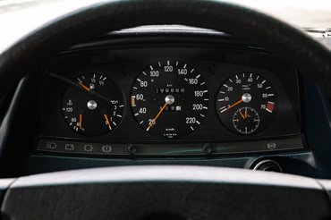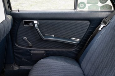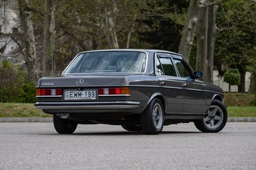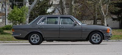 Ilyet már nem taxis vagy utazó ügynök választ: a képen látható autót szervizkönyve szerint egy svájci panziós vette meg Zug városka Mercedes-Benz kereskedéséből, 1982-ben. Fehér fényezés és kék szövetkárpit jellemezte, ABS, jobb oldali tükör, elektromos ablakok elöl, elektromos tetőablak és négyfokozatú automata váltó került bele extraként. Meg szervokormány, amit nem sokkal később már szériában adtak minden 123-hoz az 1983-as modellévre kijött frissítéssel. Akkor lett általános a négyzet alakú főfényszóró is, mert addig csak ehhez a 2,7 literes, soros hathengeres motorhoz járt, a többi a jól ismert kerek változatot kapta.