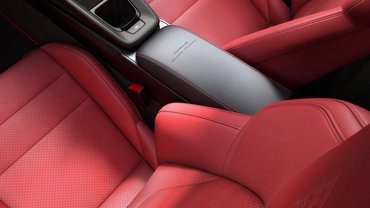 Karbonbetétes a sportülések hátulján a betét és még a szellőzőrostélyok lamellái is bőrözöttek. A piros cérnával varrott kartámaszon pedig a Porsche Exclusive Manufaktur logója díszeleg.